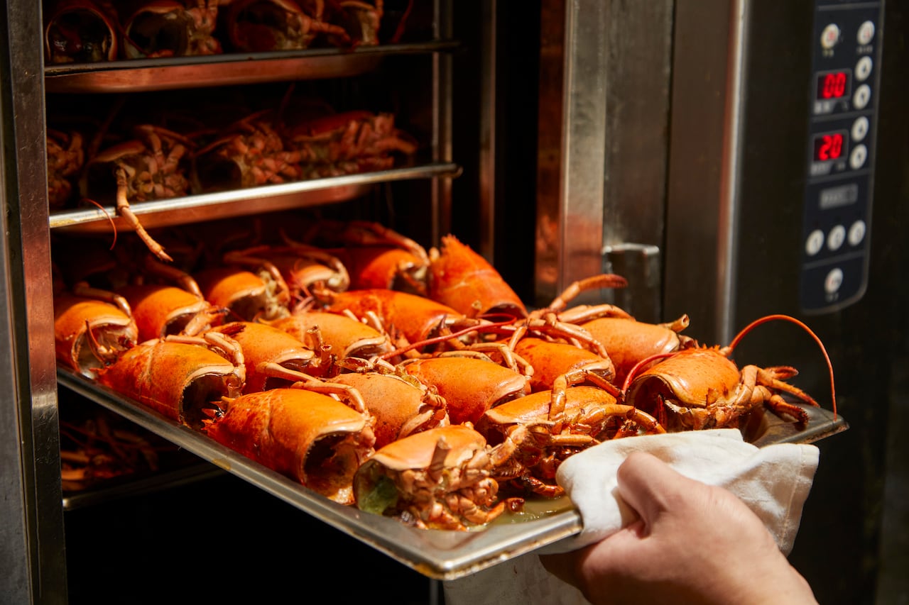 オマールヘッド、玉ねぎ、人参、セロリ、トマトペースト、干し椎茸、生姜、エストラゴン、ブランデー、醤油、酒、みりん、米、調味料
